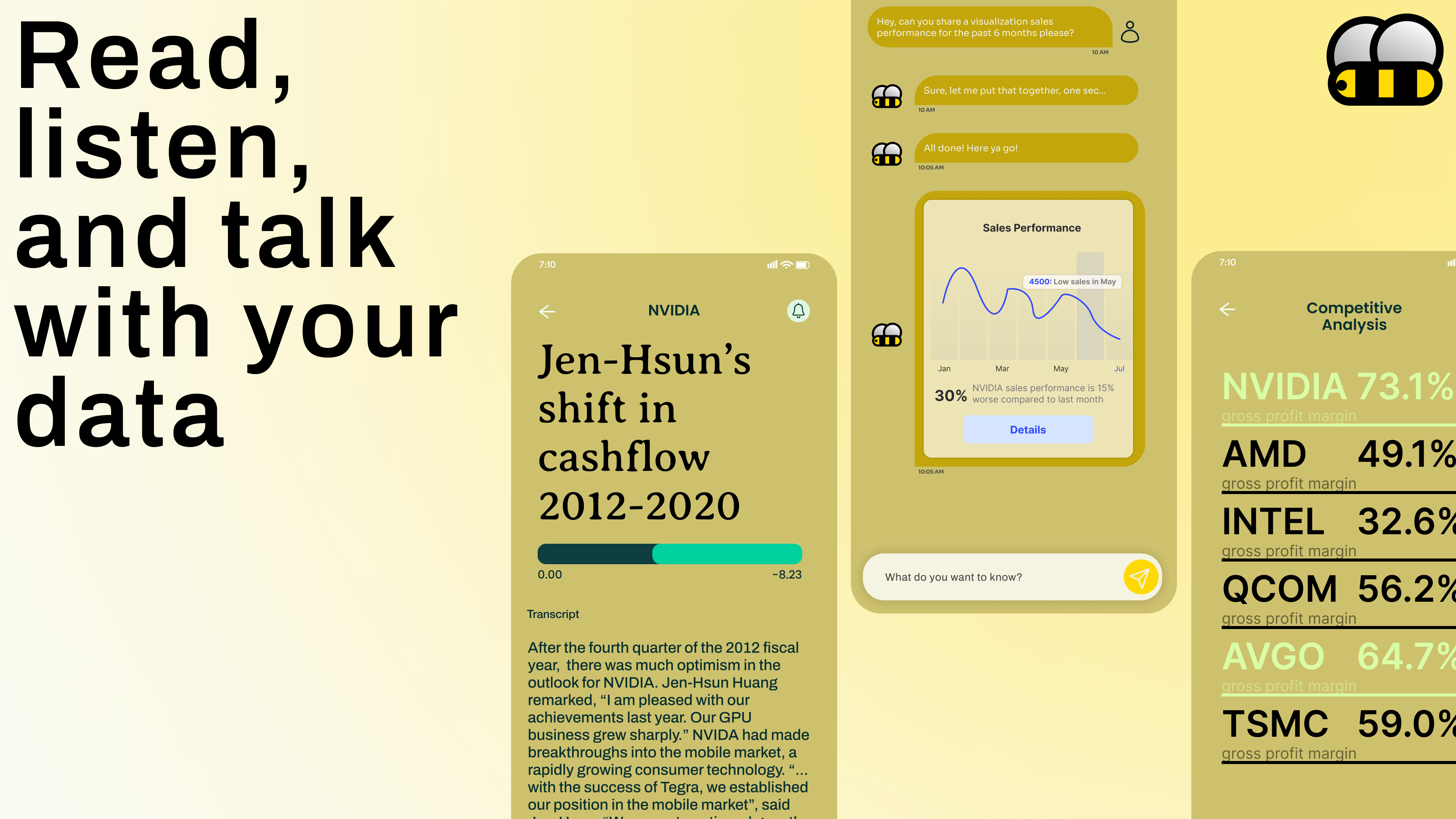 Capture signal, cut the noise. Beezneez is a modern, flexible, business intelligence platform for investors powered by AI agents. Beezneez is the new way to get into the details of a business to make important investment decisions. It's Value Line, but better. Users can create their own dashboard, curate their own indicators, ratios, risk metric, and management profiling, all from one knowledge base.